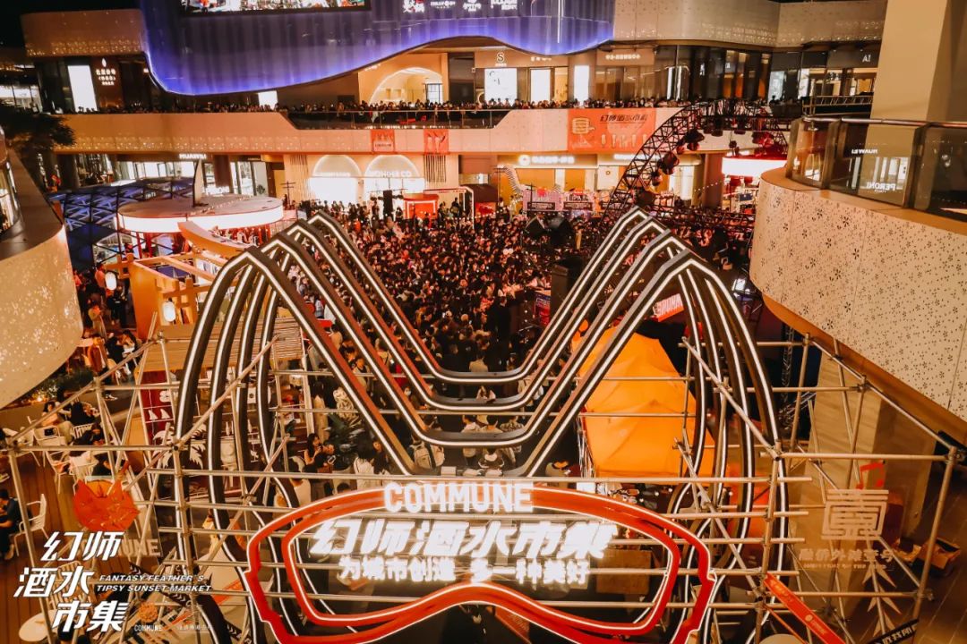 去年COMMUNE還做了一場幻師酒水市集活動,它不僅是單一的酒水節、音樂節,而是聚IP潮玩、酒水大師班、酒水市集、音樂節、生活美學為一體的大型線下互動,短短三天就有超20萬的商圈客流量。