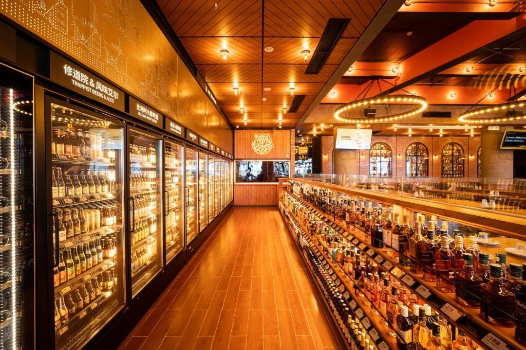 酒水自選區算是個零售板塊,COMMUNE全年有來自世界各地的1000種以上的酒水品類,不間斷滾動上架,供消費者挑選,整齊成列的排列方式也成為店內的打卡聖地;其次是超級吧枱,這裏主要銷售近50多個SKU,從咖啡、生啤、雞尾酒,再到奶茶,豐富的品牌產品可供消費者自由選擇;再搭配西式簡餐用餐板塊,既滿足用餐時段的客人,也為聚餐社交提供好的場景。
