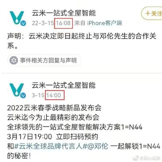 15 日下午 2 點,雲米官宣鄧倫成為雲米全球品牌代言人。鄧倫偷逃税事件曝光後,雲米迅速宣佈,終止與鄧倫的合作關係,成為史上最快 " 翻車 " 代言。