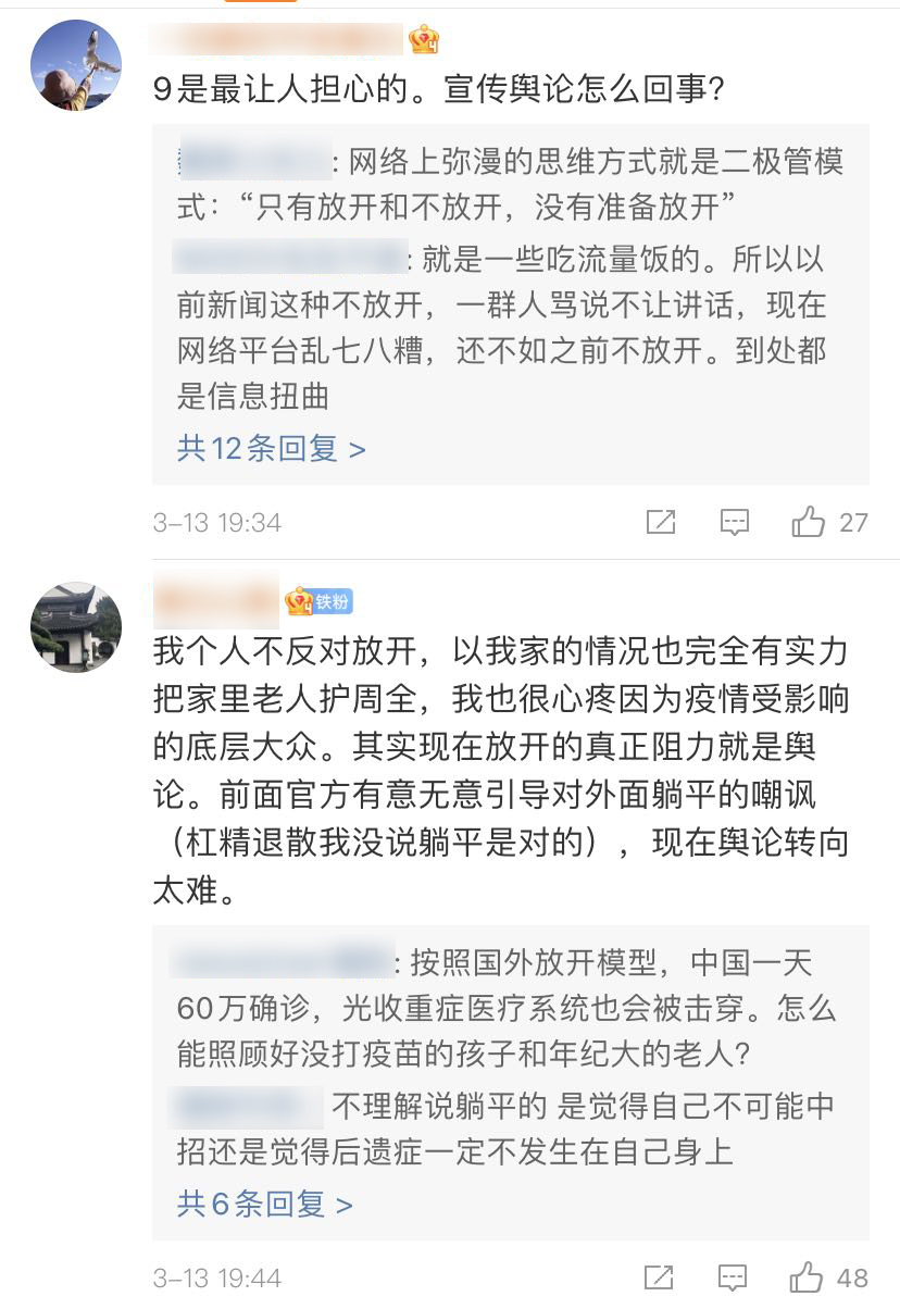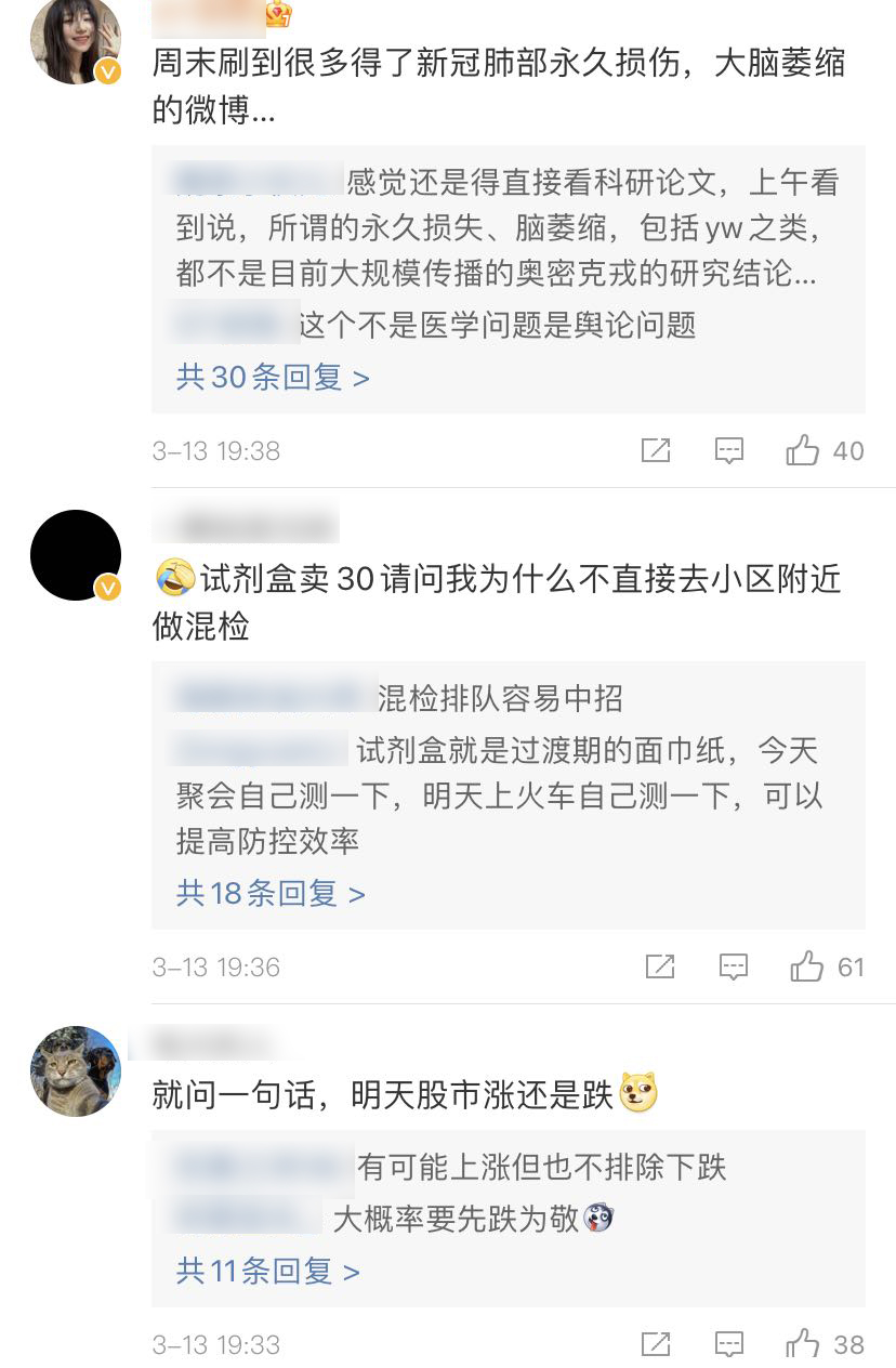 9、而網絡上的聲音也有他們自己的想法:退一萬步講,起碼宣傳引導上要轉向啊,年輕人恐慌是最壞的表象,因為他們的整體風險最低理應最不恐慌,説明羣體認知肯定有問題;