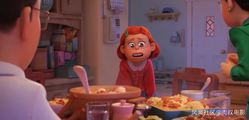 美玲第一次變身時,鏡頭特寫了她變紅的瞳孔。媽媽以為她月經初潮了,一直開導她:身體會發生一些變化。