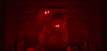 伴隨着太陽下山,祠堂從明亮的紅亮變成了昏暗的藍色,是轉變的伏筆。