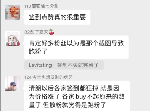 吃了教訓的他們,也更懂得在公共平台偽裝自己,及時噤聲。“聽説二輪清朗又快來了,大粉已經在羣裏通知了,最近一段時間除了羣裏在哪兒都不要提集資追星的事”。