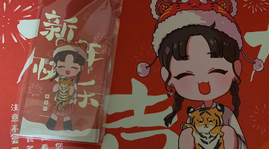 從襯衫、襪子、外套等衣物,再到鼠標墊、暖手寶、盲盒等小物件,只要後援會賣的、能用得上的肥肥都會買。對於傳統節日習俗沒什麼興趣的肥肥,今年春節破天荒地貼了春聯,也因為是後援會出品。