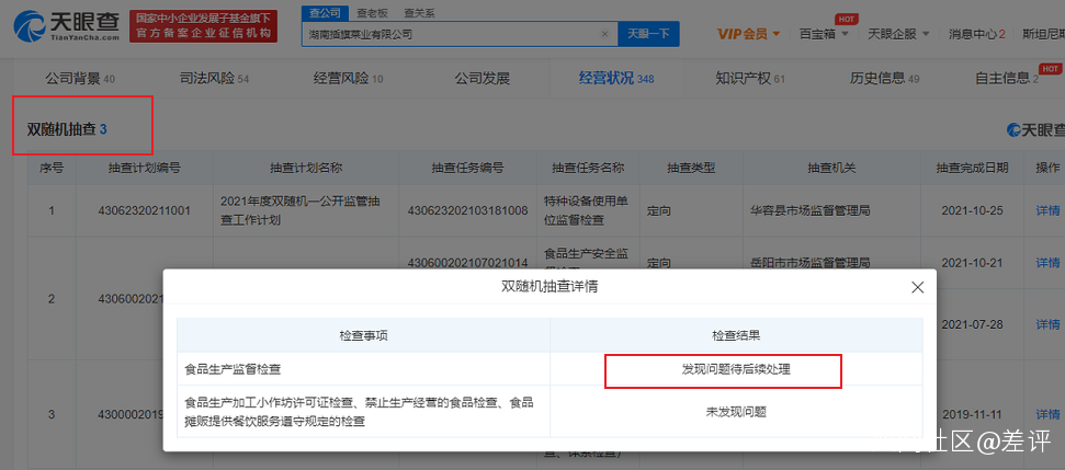 2021 年 10 月的雙隨機抽查中,插旗菜業的食品生產監督檢查就已發現問題。