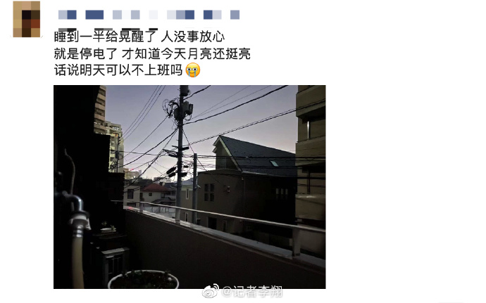 旅居日本的海外華人資訊博主付玉蒙@付玉蒙 表示,地震發生時,周圍的玻璃門發出“砰砰”的強烈碰撞聲,最後我家的貓立刻躲了起來,強烈震感持續了近1分多鐘。日本各電視台都放棄了原有的播出計劃,開始報道此次強烈地震的時事新聞。我看到此次強震對日本東部地區的200多户造成大範圍停電的影響,而所有媒體都在聚焦了解福島核電站是否收到此次地震的影響。