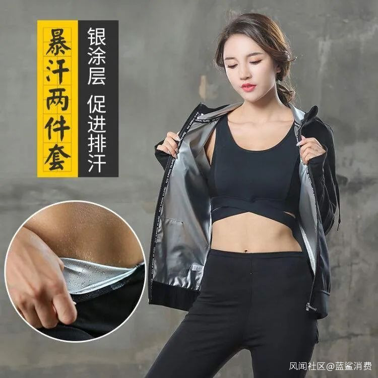 想必大家都在電梯間梯媒裏聽到過“XX暴汗服,拜拜小肉肉”的洗腦廣告,這樣的衣服售價達300-459元。出汗的效果源於衣服內層的化學塗層不透氣。很多消費者以為出汗就能減重,新南威爾士大學教授安德魯·布朗做過實驗,在減重的過程中,脂肪代謝後有84%是隨呼吸排出,暴汗服減走的只是水,喝兩口水就原形畢露。花大價錢換來和夏天穿棉襖一樣的效果,多少有點“冤大頭”。