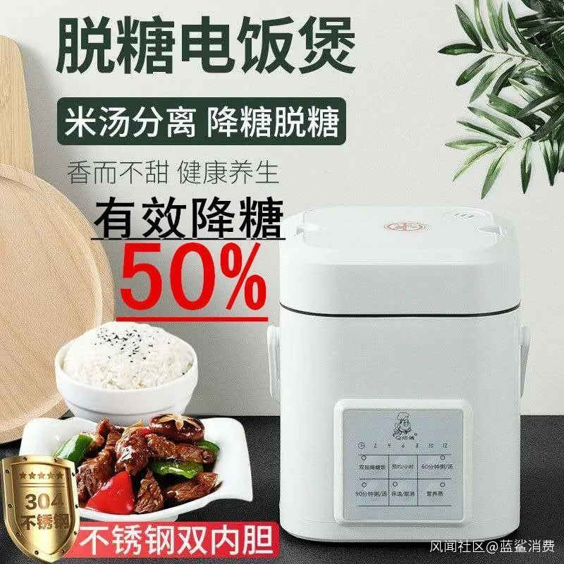 脱糖電飯鍋,一度成為各大電商平台的網紅品牌,號稱具有脱糖、降糖功能。這與時下不少人將米飯列為不健康食品、易肥食物有關。而央視的實驗卻發現,普通電飯煲與脱糖電飯煲煮出來的米飯,對健康人血糖水平影響差別不大。一般普通電飯煲500元/台,脱糖電飯煲市場均價1917元/台,最貴賣到8000多元。對想要減肥以及控糖的人來説,花如此高的智商税,不如恪守“管住嘴,邁開腿”的原則來得實際。