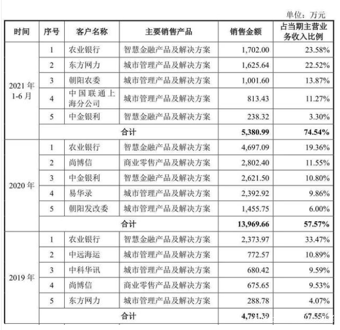 從格靈深瞳自身層面來説,據招股書數據顯示,2021年1-6月,公司前5大客户貢獻總收入的74.54%,相比2019年的67.55%可以看出,格靈深瞳對大客户的業務依賴度非常明顯,但需要注意的是,大客户的策略雖然能帶來比較大的訂單金額,但存在客户談判難、客户集中的風險。