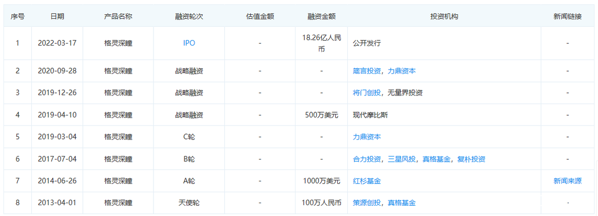 在融資方面,格靈深瞳強悍的融資能力也是有目共睹的,創立之初,便拿到了真格基金和策源創投的天使投資,時隔不久,又引入了紅杉資本的千萬融資。據企查查數據顯示,截止目前,格靈深瞳共收穫8輪融資,投資方包括箴言投資、力鼎資本、將門創投、紅杉基金、真格基金等投資機構。
