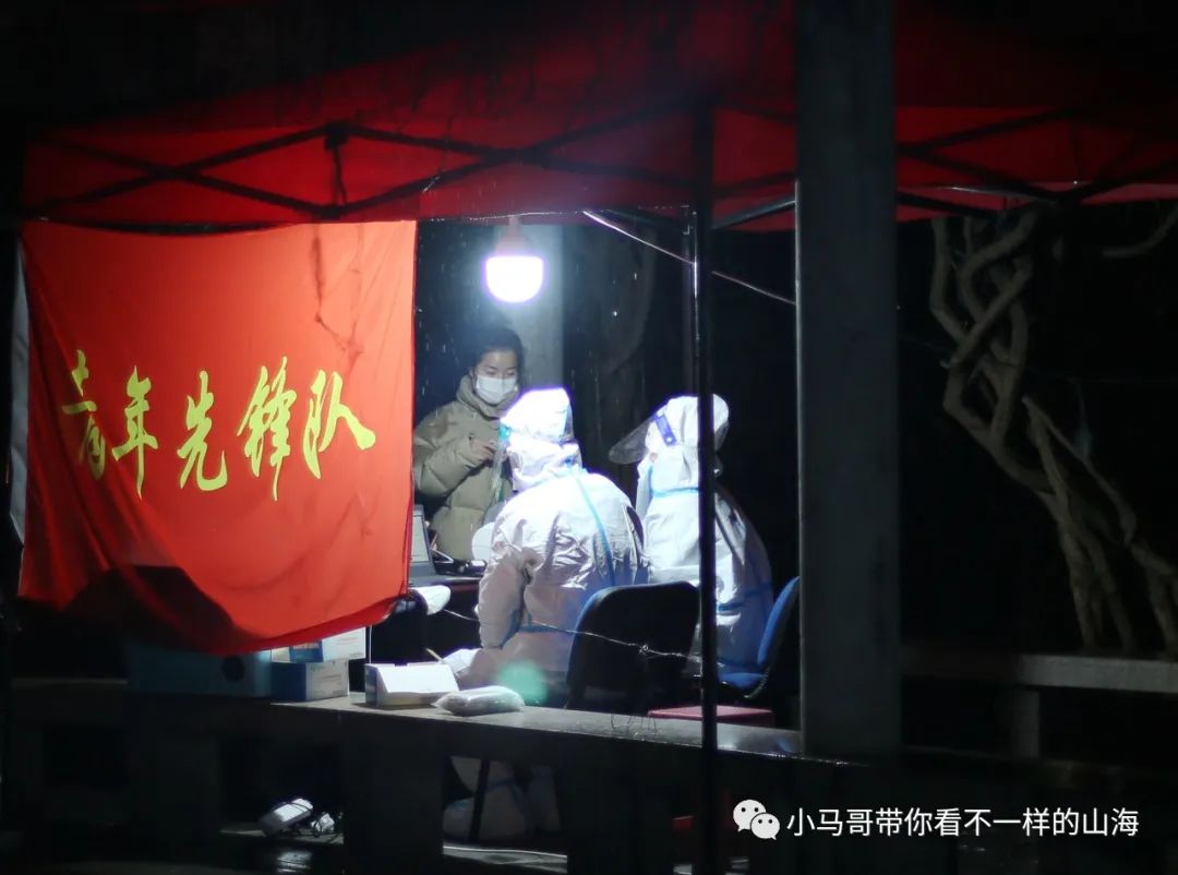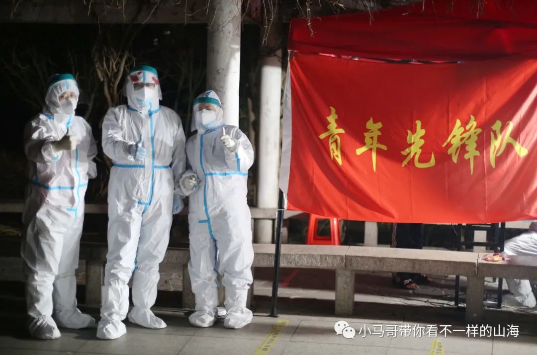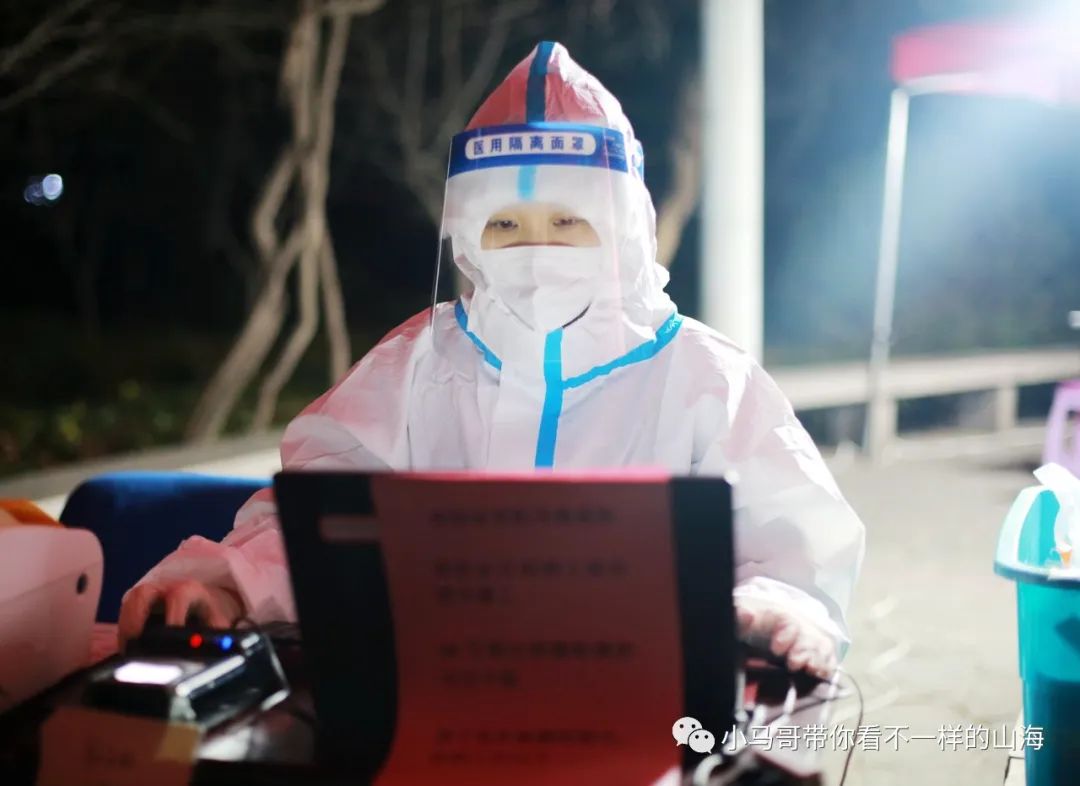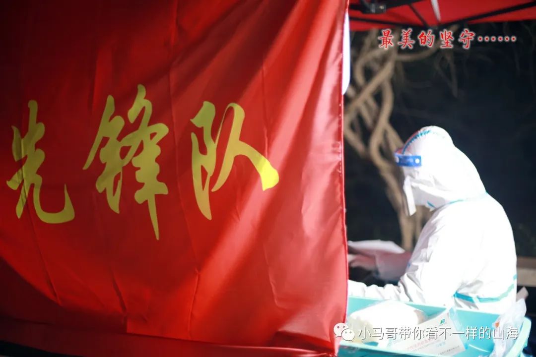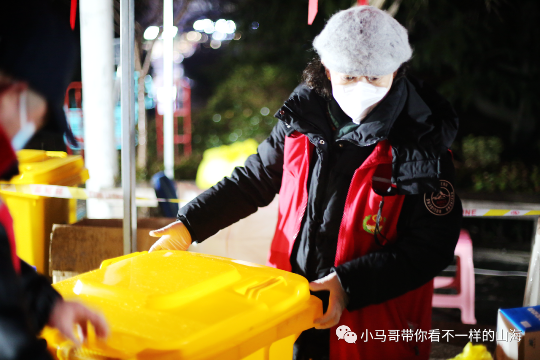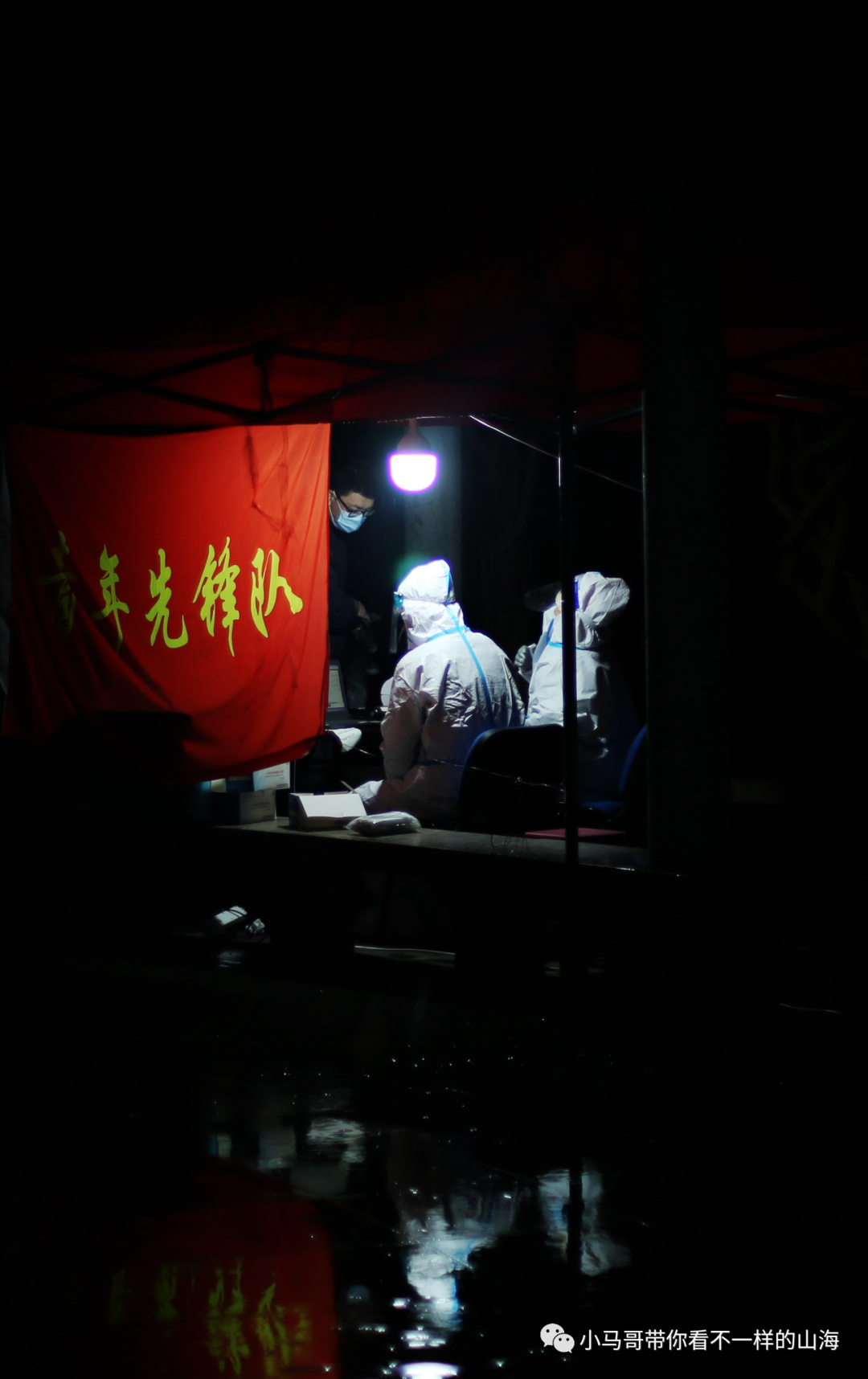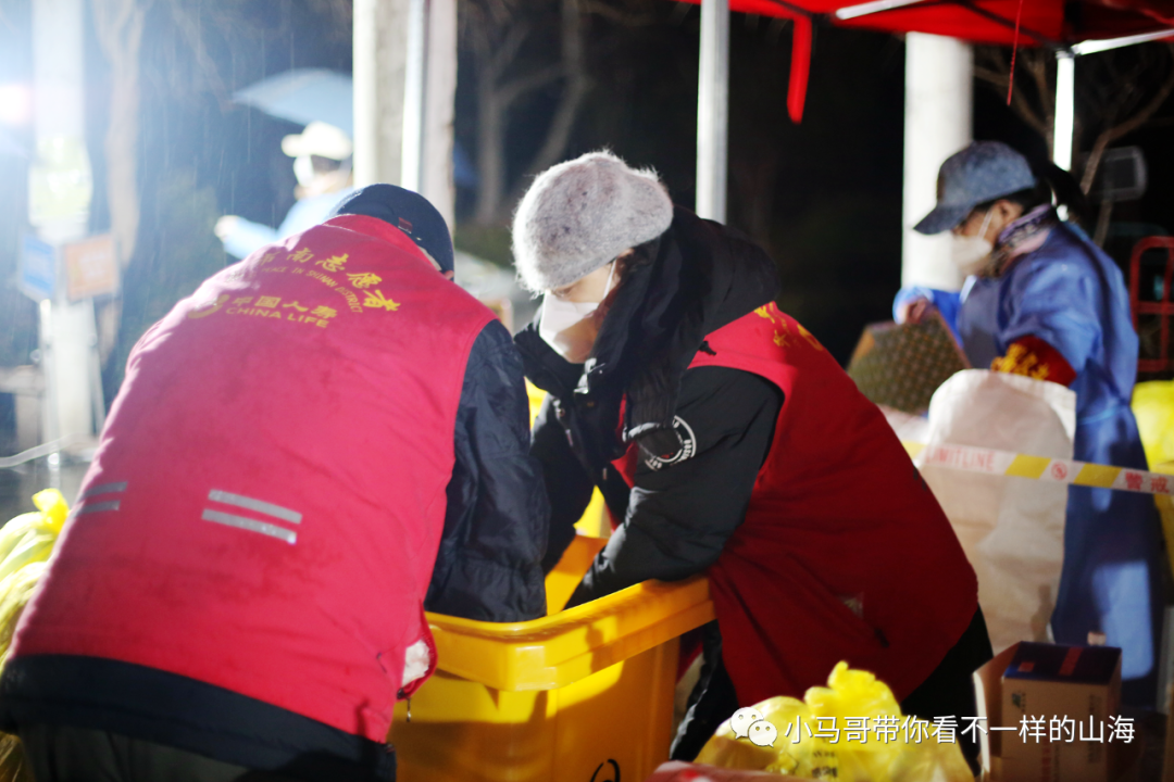 3月18日晚19點37分,寒潮來襲,島城淅淅瀝瀝的小雨轉為了中雨,青島市市南區金門路街道逍遙社區的工作人員和醫護工作者、公安民警、城管執法隊員、志願者在連軸轉近10多個小時的情況下依舊堅守崗位,默默奉獻着……