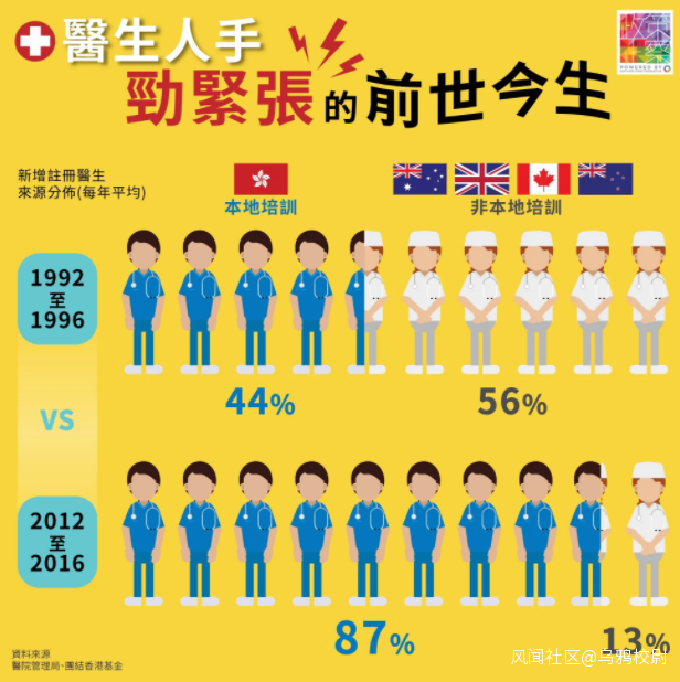 目前香港一共有15000名醫生,等於香港500人裏只有一個醫生,缺口非常大。據港媒統計,香港至少需要再增加3000名醫生,才能保證滿足需求。