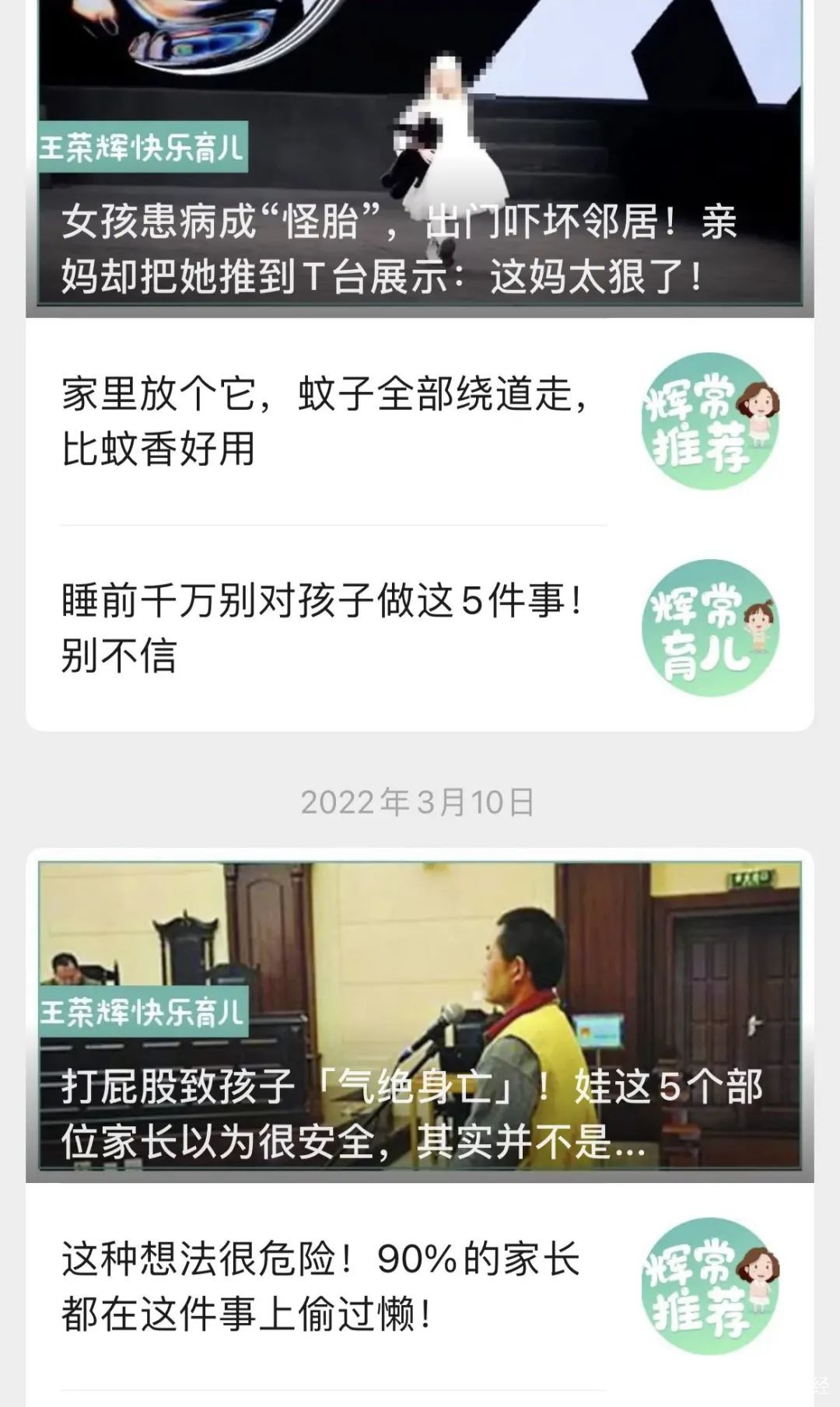 但是我們看一下“王榮輝快樂育兒”的公眾號內容可能就快樂不起來了。
