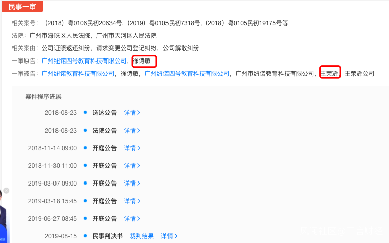 徐SM:徐SM被王榮輝以眾籌方式忽悠投資了其中一個園區,但是王榮輝從來不給她看財務報表,也沒有分紅還篡改數據,雙方最終走上法庭。