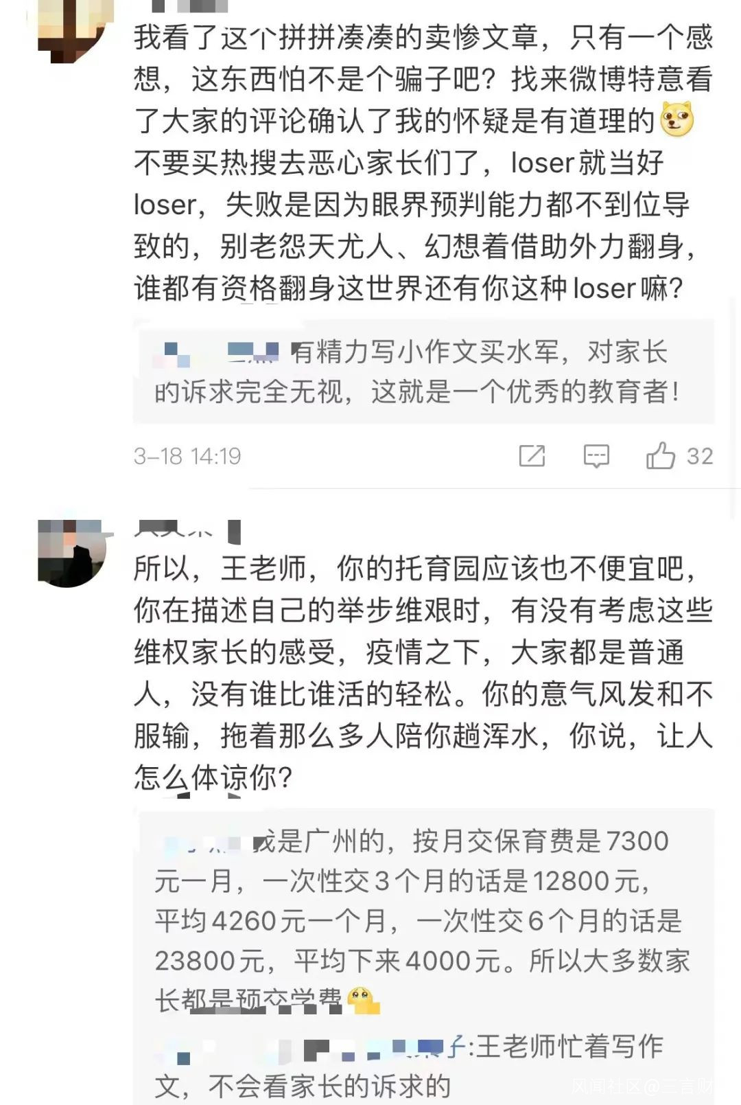 對於王榮輝發文章,有家長認為就是想引流,如果真的很慘,就沒有時間寫軟文了。