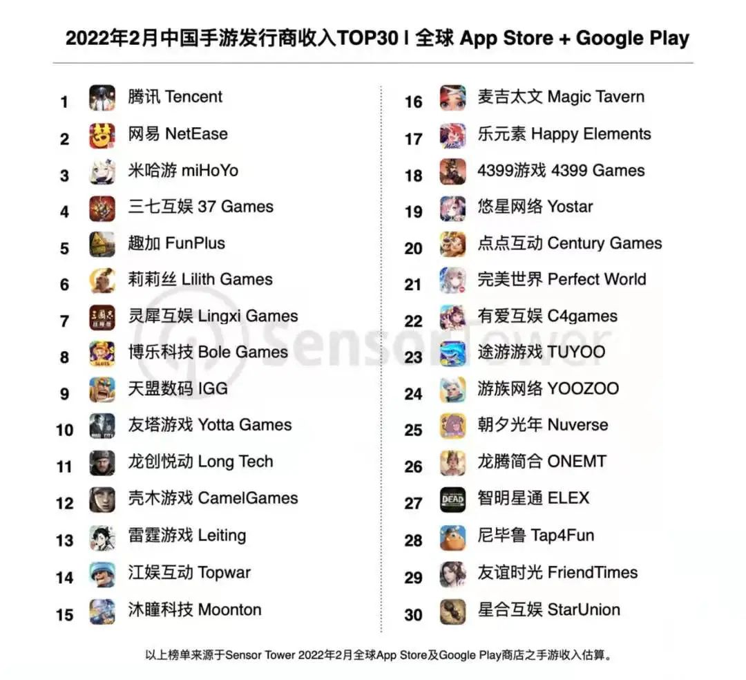 2月中國手遊發行商全球收入排行榜中,三七互娛和趣加遊戲分列4、5位,足以説明這兩家公司成功站上了出海的風口。