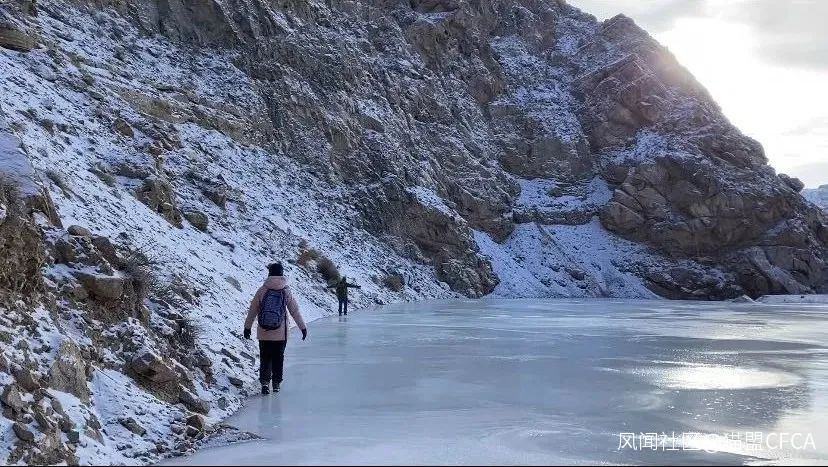 冬天的溪水長這樣,我們儘量貼着邊走以免冰面破裂陷進去©巧巧