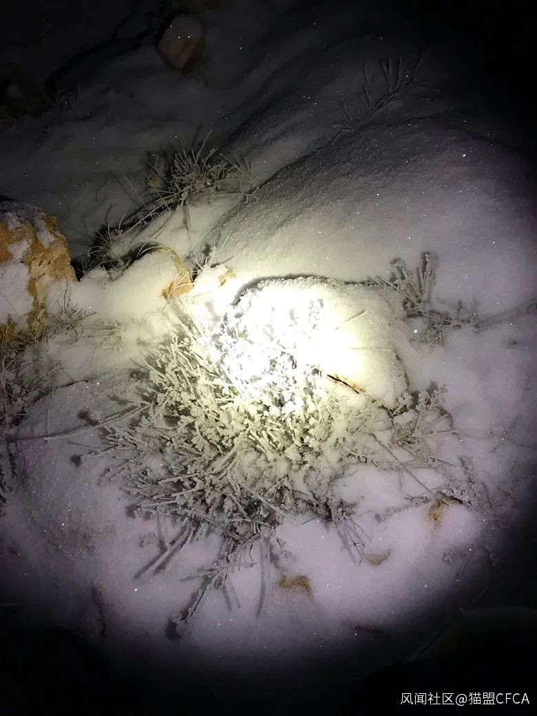 夜晚的雪在手電的照耀下格外亮晶晶©大鵝