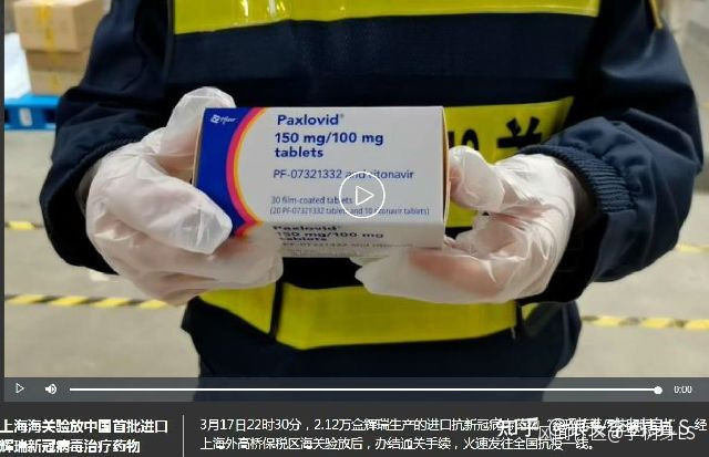 今(18)日午後,澎湃視頻發佈《上海海關驗放中國首批進口輝瑞新冠病毒治療藥物》消息稱,3月17日22時30分,2.12萬盒輝瑞生產的進口抗新冠病毒藥物“奈瑪特韋/利托那韋片”,經上海外高橋保税區海關驗放後,辦結通關手續,火速發往全國抗疫一線。
