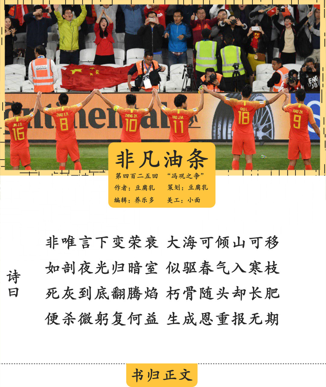 眼看球員、足球評論員和鞏漢林、馮鞏等著名演員的嘴仗越打越激烈,我倒是有個想法。中國男足真沒必要特意編段子,因為它本身就是一個巨型黑色幽默。假如鞏漢林老師把俱樂部欠薪這件事編成精彩的小品諷刺一番,我想馮瀟霆這樣的球員不僅不會反感,還會非常支持。