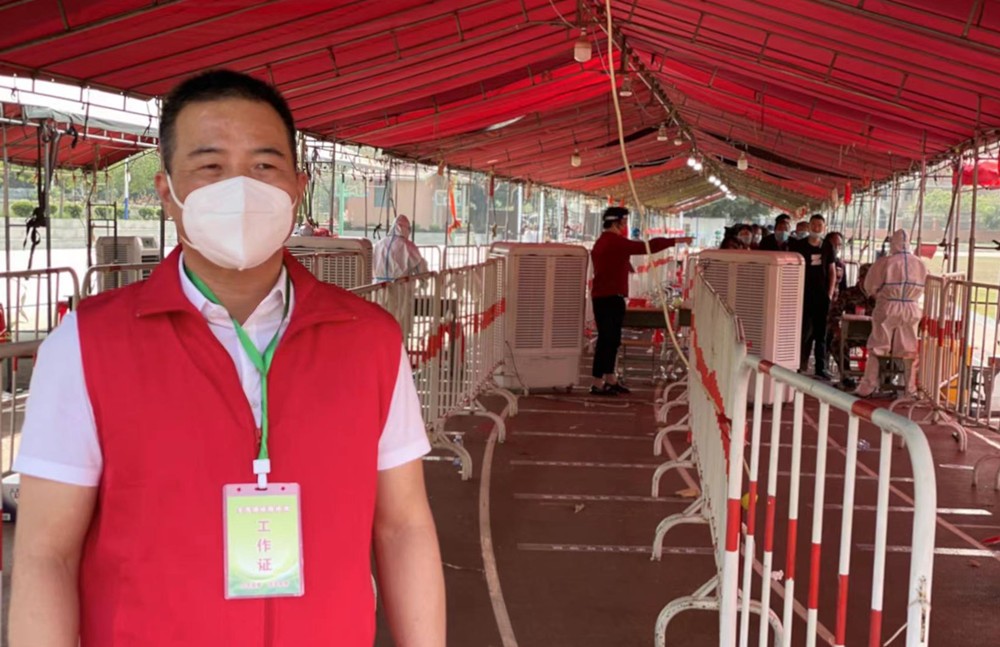 圖:志願者沈榮貴在核酸檢測點現場