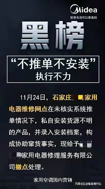 能看到,在每年大促或活動期間,基本都會有品牌站出來表示將嚴查“竄貨”,去年年底一張美的空調“黑榜”的就曾在業界廣泛流傳,很顯然“竄貨”對於市場,乃至行業帶去的弊端,品牌方早已知曉,但除了發現一個打擊一個,廠商其實也沒有更多辦法,只是這個多年頑疾在大環境向下的時候,顯得尤為突出。