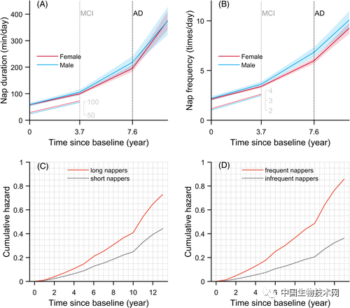 一、隨着年齡增長,午睡時間更長,或更頻繁,並隨着阿爾茨海默症的進展還會加速這種趨勢;