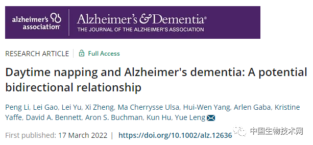 2022年3月17日,發表在**《阿爾茨海默症協會雜誌:阿爾茨海默症與痴呆症》上的一項新研究中,來自美國加州大學舊金山分校精神病學和行為科學系助理教授冷月與哈佛大學醫學院布萊根婦女醫院的研究人員發現,午睡與阿爾茲海默症之前存在潛在的雙向聯繫:午睡過多、過長會增加未來患阿爾茨海默症的風險;而阿爾茨海默症導致患者白天過度午睡。**