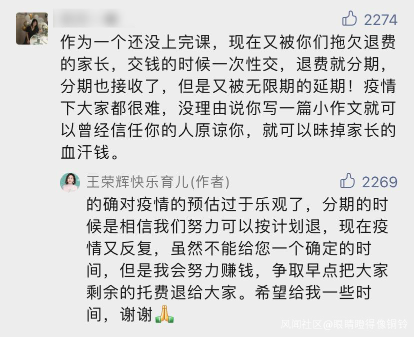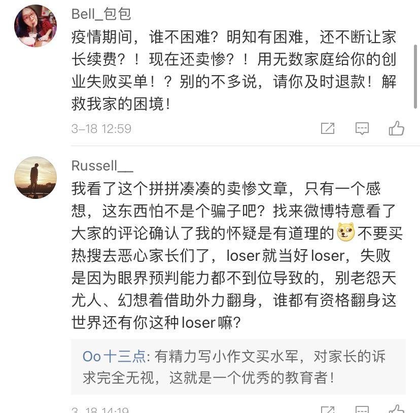 有人稱賣房創業,因疫情負債累累無家可歸,但看評論裏全是維權的家長_風聞