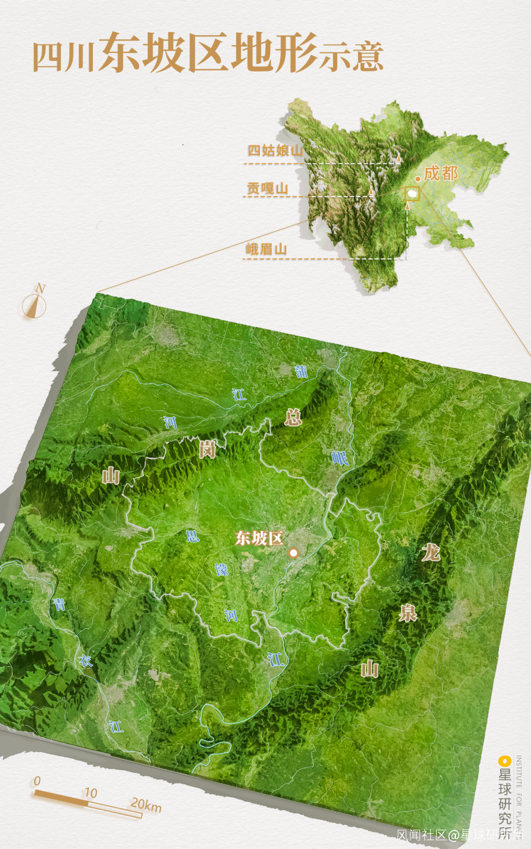 東坡區地形及位置示意圖,眉山縣於2000年改為東坡區 | 製圖@張威@星球研究所