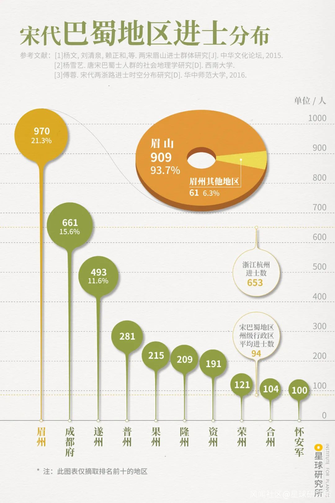 宋代巴蜀地區進士分佈圖 | 製圖@龍雁翎/星球研究所