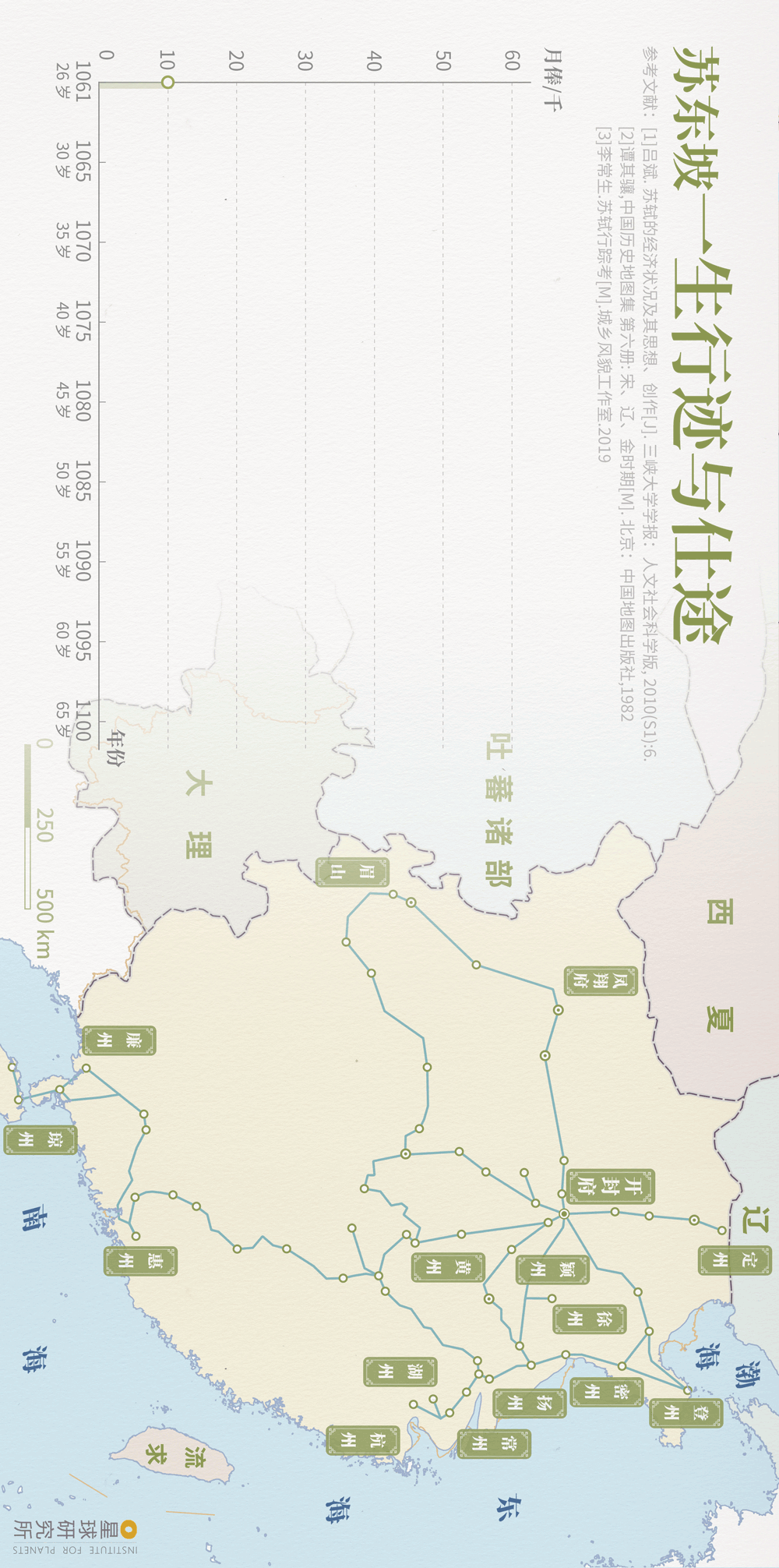 請橫屏觀看,蘇東坡一生行跡及仕途示意圖,於1101年卒於常州 | 製圖@張威/星球研究所&龍雁翎/星球研究所