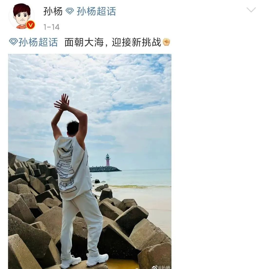 今年1月,孫楊在微博上發了一張他站在三亞海邊的照片,配文“面朝大海,迎接新挑戰”,更讓不少人浮想聯翩,以為他要努力訓練,為將來複出做準備。