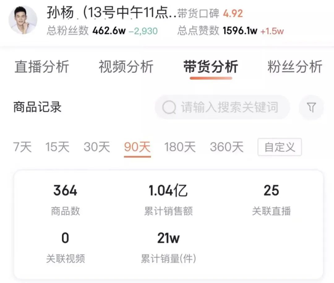 一場近9小時的直播,孫楊賣出了664.4萬元的商品!考慮到其抖音粉絲僅470萬,這一成績已經非常亮眼。