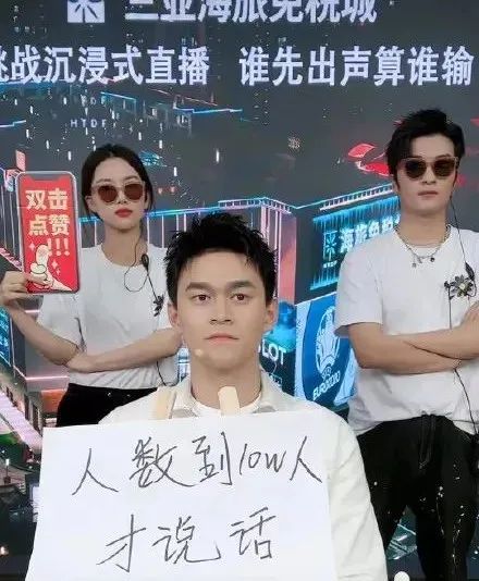 同樣的套路,後面還有:人數到5W,笑一下;人數到8W,保持微笑;人數到10W,才開口説話。