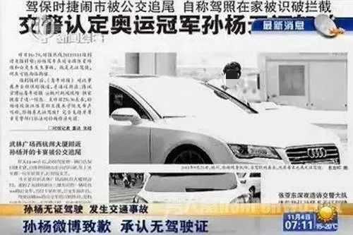 賽場下,無視社會規則。2013年,23歲的孫楊開着豪車,被一輛公交車剮蹭,公交車司機想出5000元私了,孫楊沒同意,選擇報警,結果警察發現孫楊無證駕駛,給了他行政拘留7天的處罰。