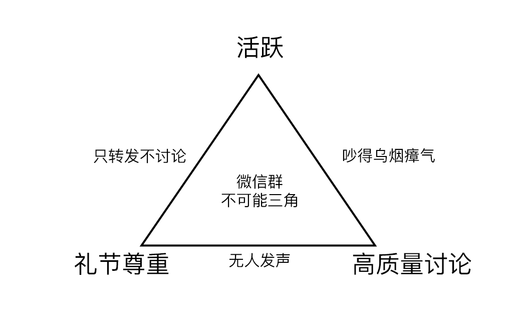 新人帶來了新問題、新觀點,羣暫時活躍一下,但是很快新人變舊人,要麼潛水不説話,要麼受不了羣的同質化、僵化乾脆退羣。