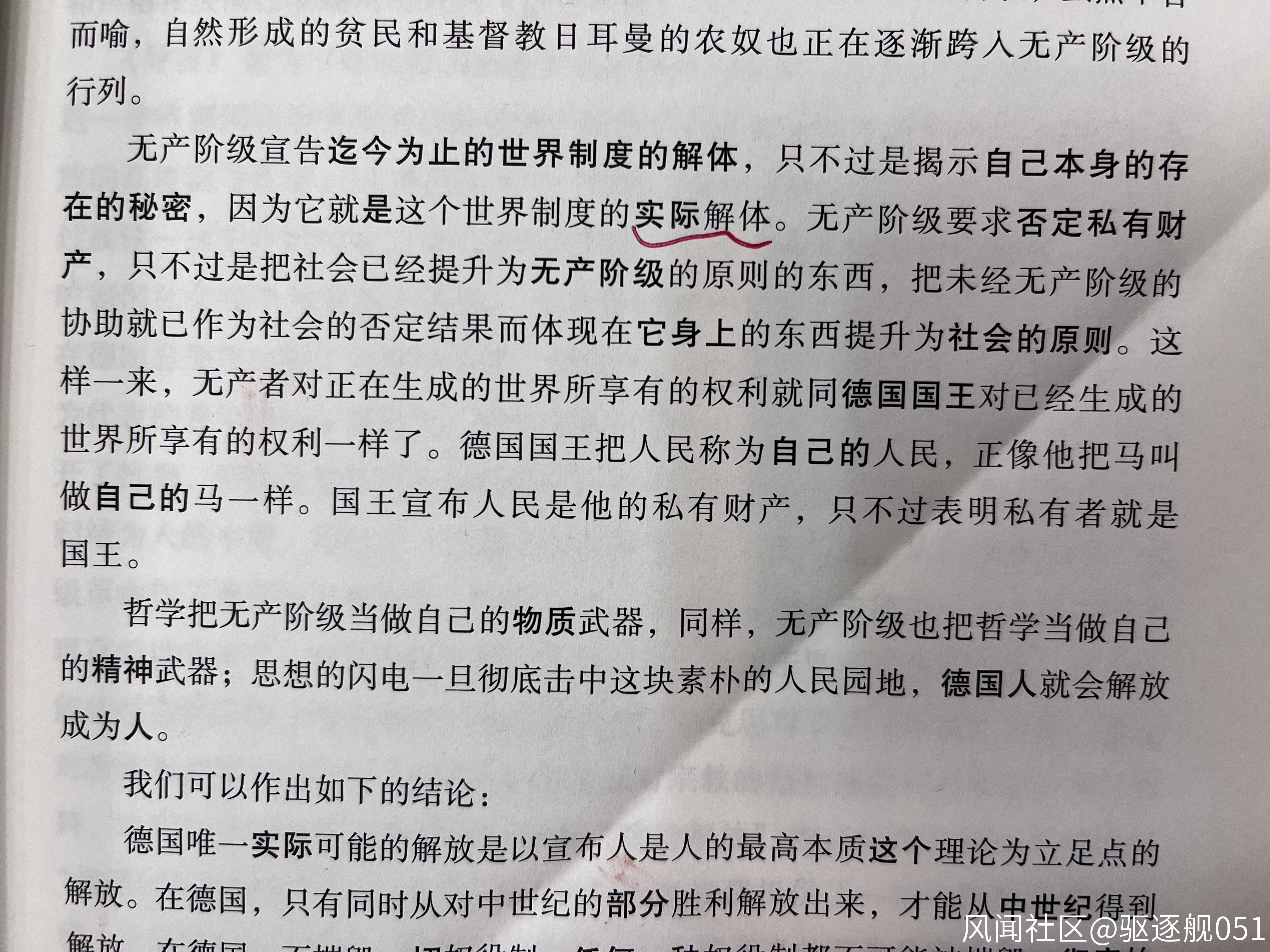 所以,讀書是好的,向老師提問是好的,但像這段話裏那位同學所不解的“無產階級存在的秘密”和“世界制度的解體”之所指,其實緊接下來的一句就有解釋,即“否定私有財產”。
