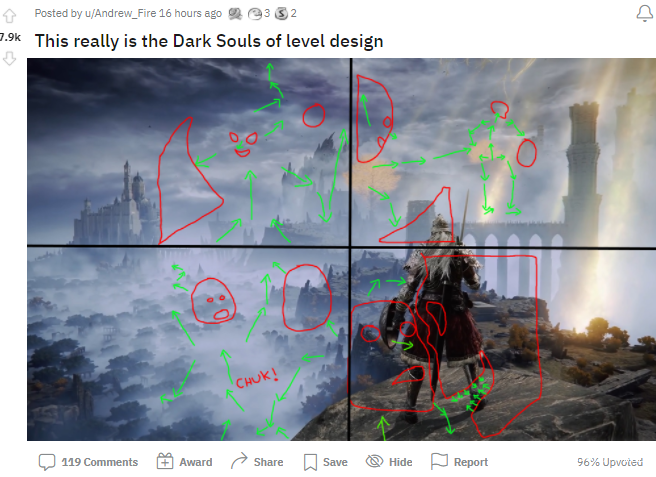 國外玩家畫圖“吹捧”老頭環關卡設計,結果變成了梗圖_風聞