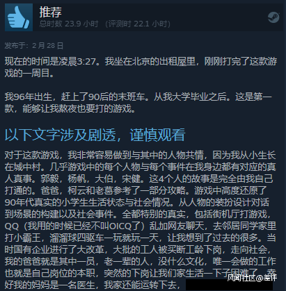 也有玩家在這款遊戲裏的每個角色上,找到了自己父母、大伯和一大批經歷了企業改革這段特殊歷史的一代人。