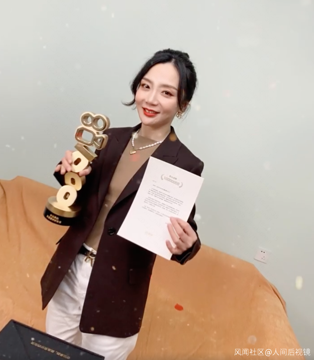 🟧 2022年2月,丁姐收到快手為點贊百萬、千萬成就的創作者頒發的粉絲成就獎盃。