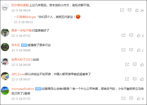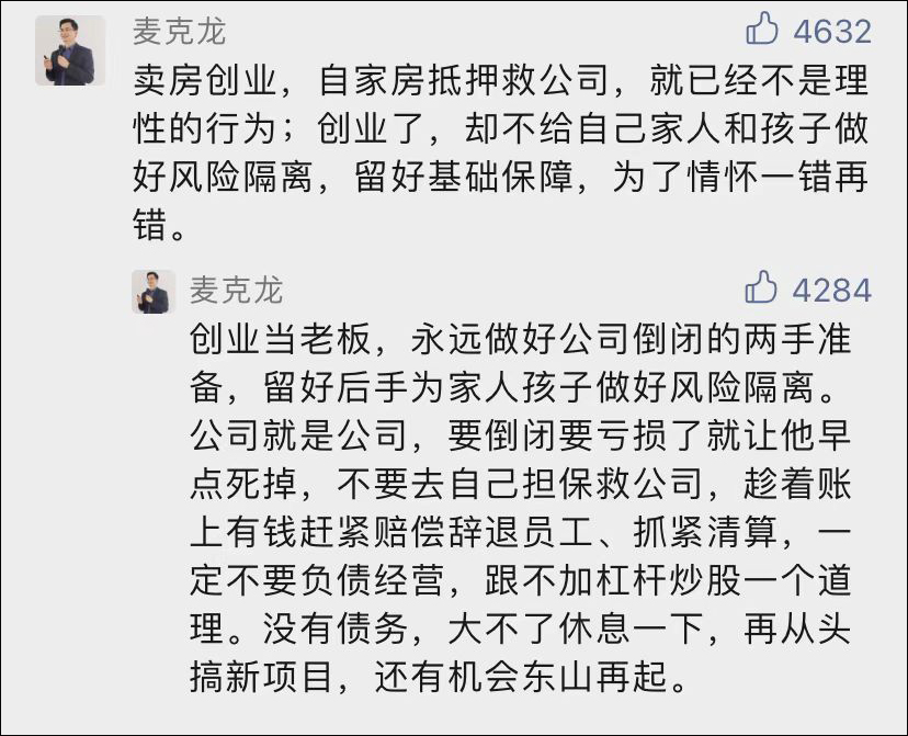 看完這篇文章,有不少網友認為不少行業因疫情倒了,但也有人認為,“賣房創業這事本身就不理性,創業了也不給家人和孩子留好基礎保障,這是一錯再錯”、還有人質疑説這是“資本發的小作文”,各位怎麼看?