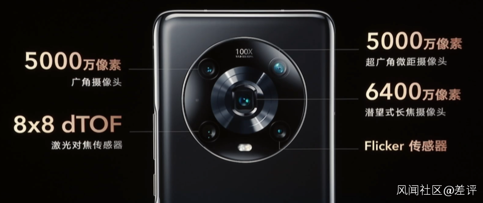 主攝採用無限接近 1/1.2 英寸的超大底傳感器和 8P 鏡頭,超級抗眩光鍍膜技術,超廣角採用雙自由曲面鏡頭, 4K 超級夜景,外加一個 5000 萬光譜增強攝像頭和獨立的 AI ISP 影像芯片等等,管你用不用得上,統統全部塞進去。。。