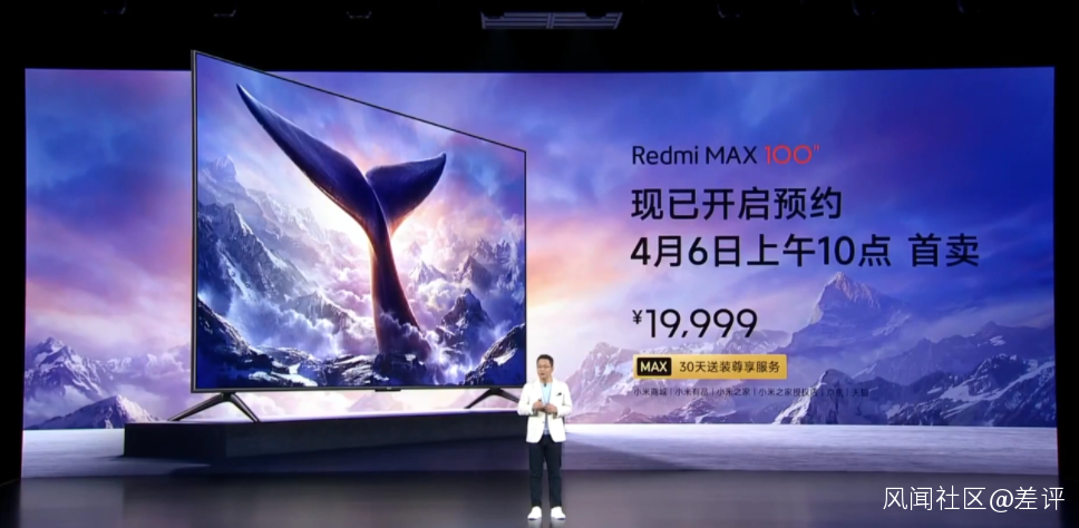 至於價格, Redmi Max 100 和紅米之前那款 98 寸的電視一樣,也只要 19999 元。