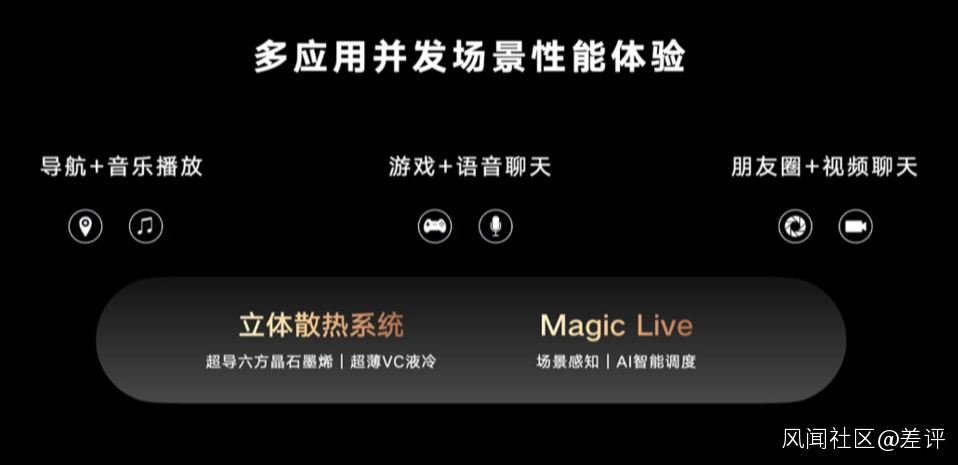 為了控制發熱,榮耀選擇物理 + 算法雙重控温,除了堆散熱之外,還有 Magic Live 帶來的 AI 智能調度,更不容易升温。