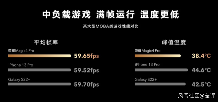 而更加實用的應該是大型 MOBA 手遊的測試,發佈會上表示只有 38.4 度,這就是一個完全能接受的温度了。