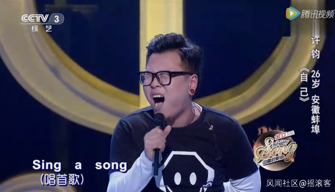就這樣,26歲的許鈞在“好歌曲”的舞台上奮力演唱,演唱中途,他奮力地摘下耳麥,在台上情難自已地淚流不止。