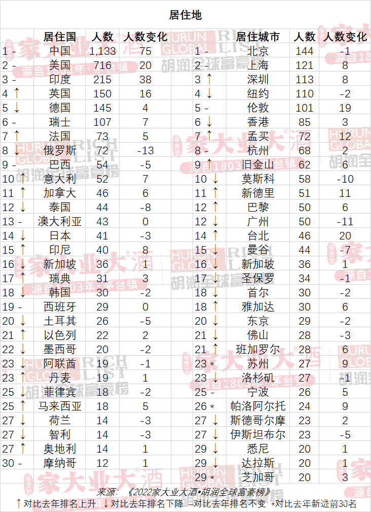 13. 2022胡潤全球富豪榜:中國十億美金企業家數量蟬聯世界第一
