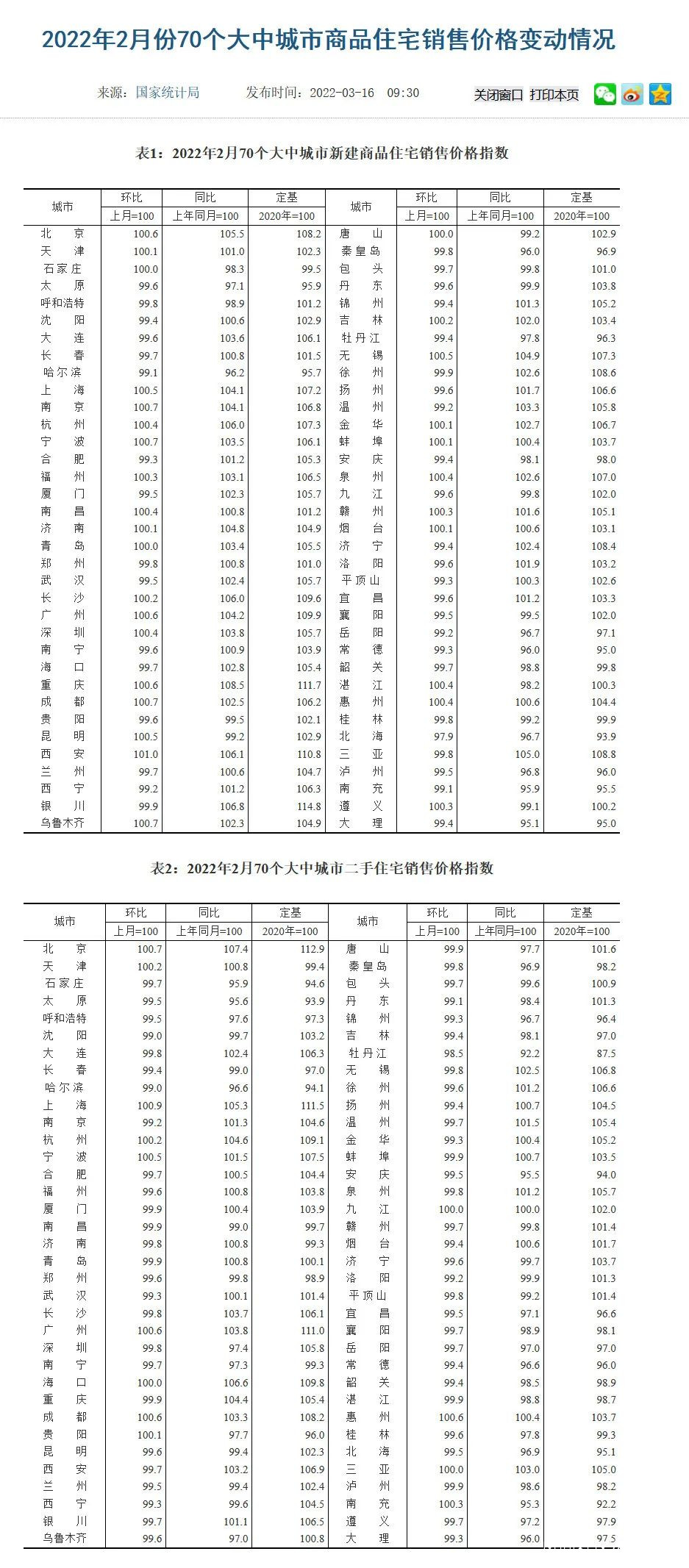 2月份,70個大中城市中,新建商品住宅和二手住宅銷售價格環比上漲城市分別有27個和10個,環比下降城市分別有40個和57個。