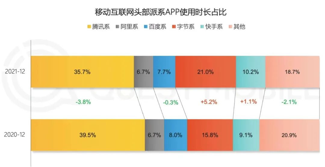 這是2020年12月和2021年12月中國互聯網各公司產品的用户時長佔比,可以看到——